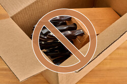 Knives will fall out of the slots and the box during transport, causing danger to all carriers. Wrap each knife separately and securely.