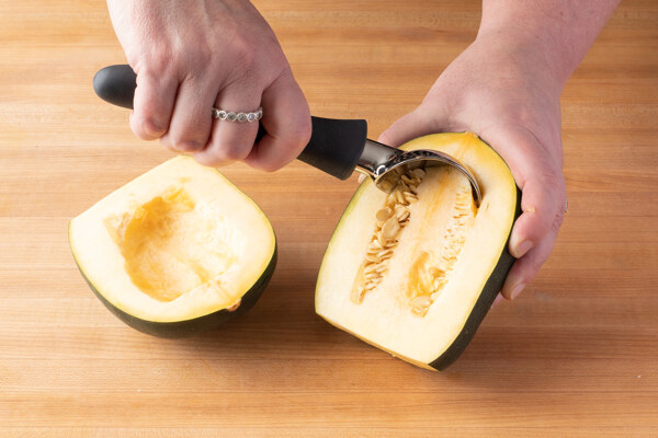 Scoop out the seeds using an Ice Cream Scoop or sturdy spoon.