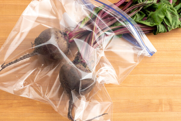 Before storing, make sure the bulb is completely dry. Place unwashed beets in a large resealable bag and remove as much air as possible. Store in the crisper drawer of the refrigerator for up to 2 to 3 weeks.