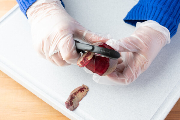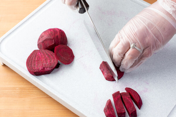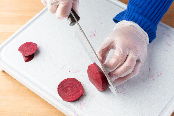 Tip: Consider wearing food preparation gloves to protect your hands from the bright red beet juice.