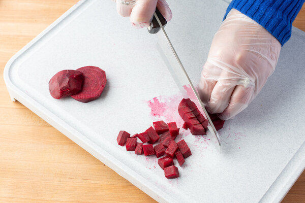 Learn how to dice beets to roast, boil or steam. They add an earthy, sweet flavor to salads, soups and even hummus.