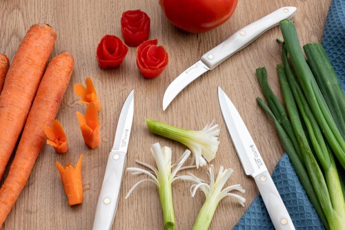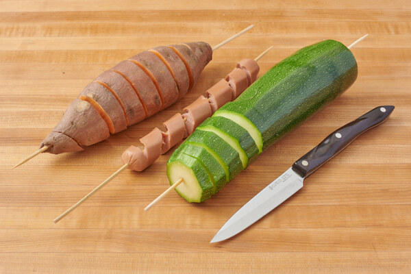 To tornado (spiralize) a potato, the sharp 4" Paring Knife is a great choice. It has a long enough blade to cut through the width of the potato and is small enough that it’s easy to maneuver.