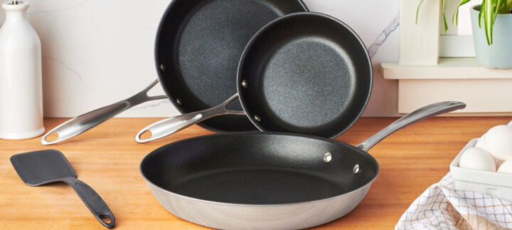 American Kitchen® Elite Nonstick Fry Pans have an Eterna® coating that lets you prepare meals without excess butter and oil. Optimal for easy release of foods, making clean up a breeze.