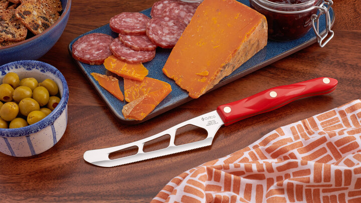 Exceptional design allows for incredible results. Exclusive Micro Double-D™ edge easily slices through dense foods. Perforations keep cheese and starchy foods from sticking to the blade.