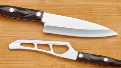 Found on Cutco Cheese Knives, the Micro Double-D™ edge is a smaller version of the Double-D® edge. It’s just as sharp and aids in cutting soft and dense cheeses.