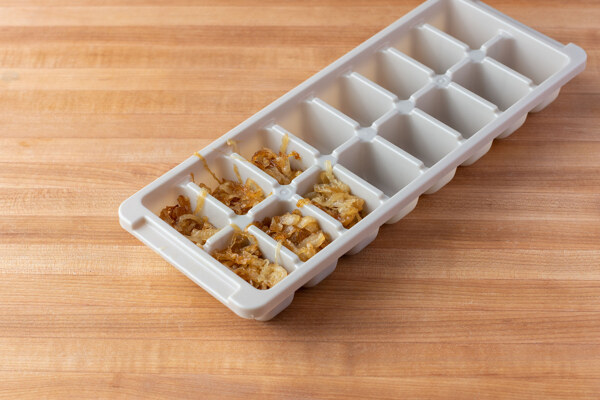 Place cooled caramelized onions in and air tight container and store in the refrigerator for up to a week or store in ice cube trays and freeze for up to three months.