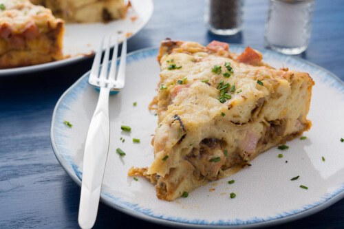 Onion, Ham and Provolone Bread Pudding