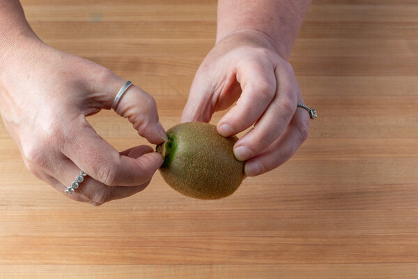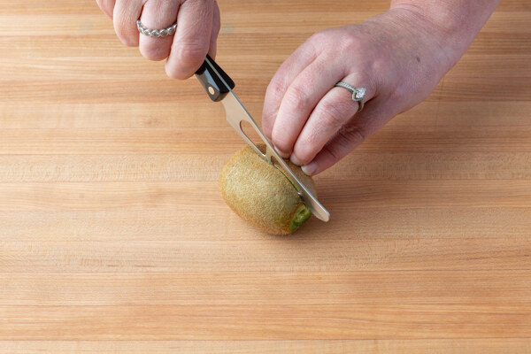 Use a Mini Cheese Knife to trim off the base of the kiwi.