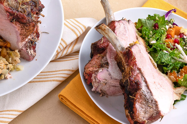 When done, let the crown roast rest for 20 minutes to let the juices redistribute, remove twine and slice the crown roast between each bone to serve.