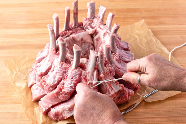 French the bones by cutting away the meat from around each bone. Scraping away as much meat as possible so the bone is clean.Show Me How