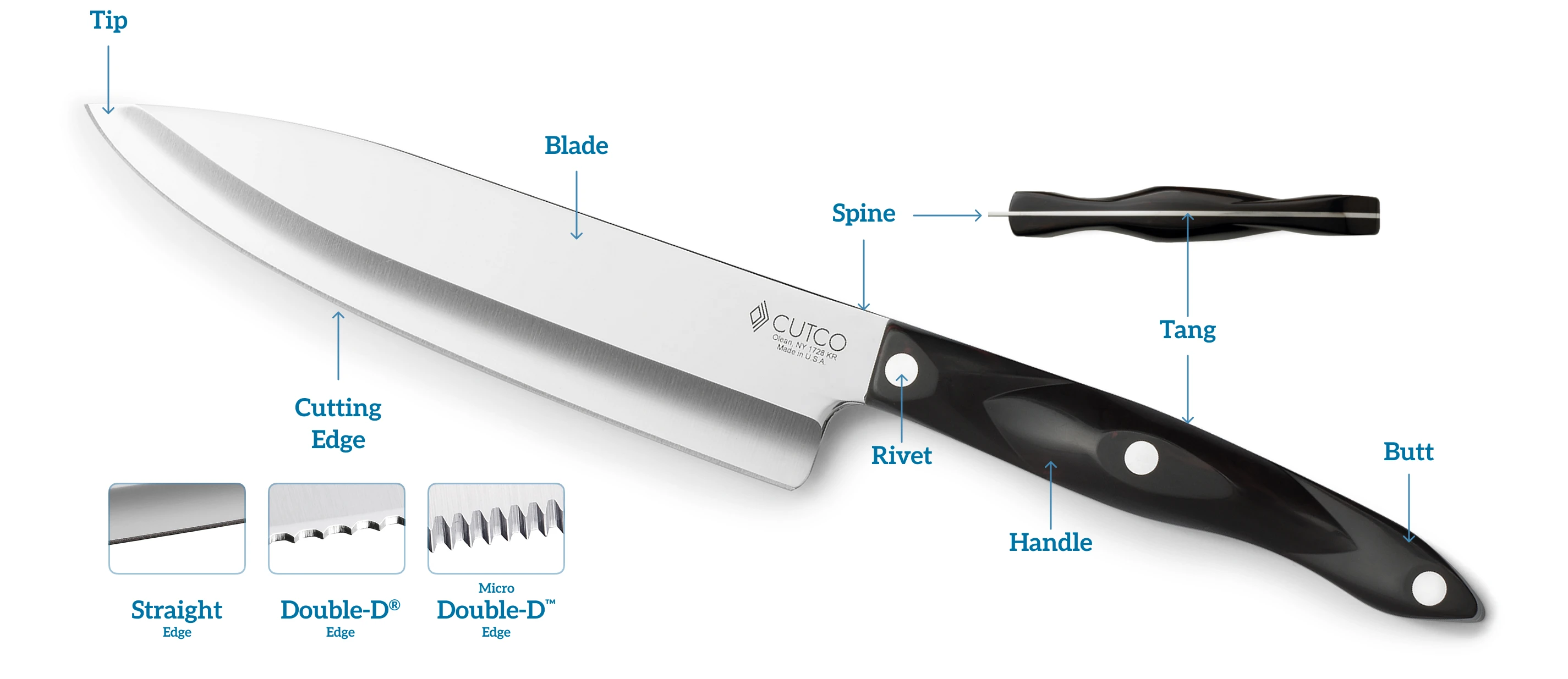 - The Double-D® (double durable) grind was added to certain Cutco Knives. It creates a series of strategically angled razor-sharp cutting edges along the blade for improved cutting efficiency.